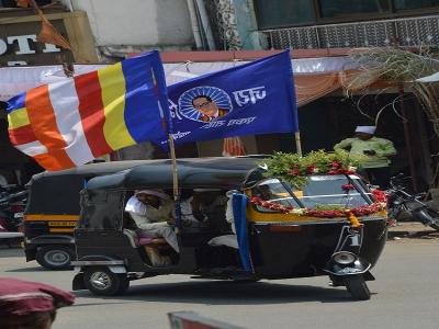 आज सकाळपासूनच वाहनांवर निळा व पंचशील ध्वज लावून भीमसैनिकांनी मोठ्या उत्साहात येथे आगमन केले