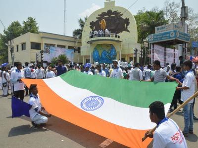 काही युवकांनी राष्ट्रीय एकात्मतेचा संदेश देत विशाल आकाराचा तिरंगाध्वज फडकावला