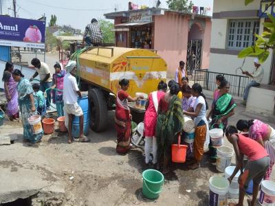टँकर येताच पाणी मिळविण्यासाठी धावपळ सुरू होते़
