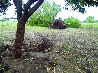 लिंबगाव, अर्धापूर परिसरातील आंबा, चिकू यासह इतर फळबागांनाही मोठा फटका बसला आहे़ शेतात आंब्याचा सडा पडला होता़