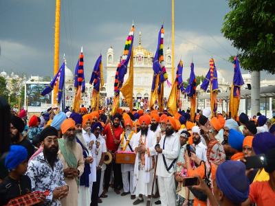 शोभायात्रेत गुरु महाराजचे घोडे, पालखी साहिब, निशाण साहिब यांच्यासोबत भजनी मंडळांचा समावेश होता