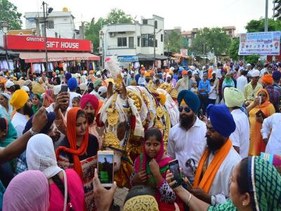 देश -विदेशातून आलेल्या शीख भाविकांनी बोले सो निहाल, सतश्री अकालच्या जयघोषात शोभायात्रेत सहभाग घेतला