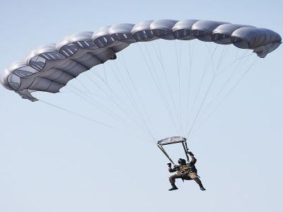 युध्दभूमीवर पॅराशूटद्वारे उतरताना सैनिक.
