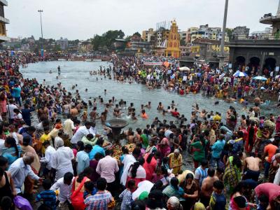 नाशिकमधील गोदावरीच्या पवित्र स्थानी भाविकांची रिघ