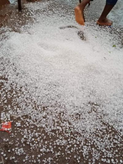 स्थानिक नागरिकांनी गारांसह पडणाऱ्या पावसाचे फोटो काढले आहेत.
