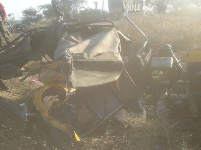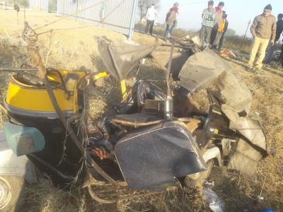 या अपघातात रिक्षेचा पूर्णतः चुराडा झाला