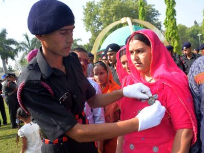 जवानांच्या तुकडीने त्यांना ‘सॅल्यूट’ केले. जवानांनी सशस्त्र लष्करी संचलन सादर क रत वरिष्ठ अधिका-यांना मानवंदना दिली.