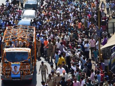 आपल्या गावच्या भूमिपुत्राला पाहण्यासाठी नागरिकांस प्रशासन अन् पत्रकारांनीही यावेळी गर्दी केली होती.