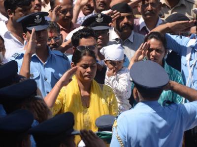 वायू सेनेतील अधिकाऱ्यांनी देशाची शान असलेला तिरंगा शहीद निनाद यांच्या वीरपत्नीकडे सुपूर्द केला, या वीरपत्नीच्या धैर्याला सॅल्यूट