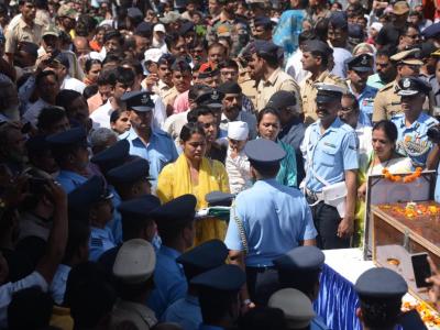 शहीद निनाद यांच्या अंत्यसंस्कारासाठी नाशिक अमरधाम येथे मोठी गर्दी झाली असून मानवंदना देण्यासाठी वायू सेनेचे पथकही दाखल झाले होते.