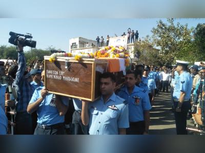 जम्मू-काश्मिरच्या भारत-पाक सीमेवर मागील चार दिवसांपासून निर्माण झालेल्या आपत्कालीन परिस्थीतीत लढाऊ हेलिकॉप्टरद्वारे सीमेवर टेहळणी करत असताना हेलिकॉप्टर कोसळून वैमानिक निनाद अनिल मांडवगणे (वय ३३) यांना वीरमरण आले.