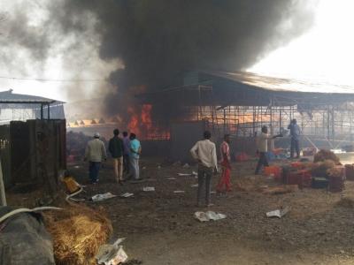 वणी (नाशिक) येथील पिंपळगाव रस्त्यावर कांद्याच्या चाळींना सोमवारी (2 एप्रिल) अचानक आग लागली.