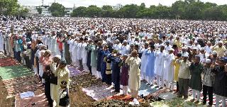 नाशिक : भारताच्या प्रगतीमध्ये योगदान द्यावे, असा संदेश शहरातील ऐतिहासिक शहाजहॉँनी ईदगाह मैदानावरून देण्यात आला. हजारो समाजबांधव यावेळी रमजान ईदच्या नमाजपठणासाठी उपस्थित होते. पारंपरिक पध्दतीने उपस्थितांनी सामुहिकरित्या विशेष नमाज अदा केली.रमजान ईदनिमित्त (ईद-उल-फित्र) शहरातील ईदगाह मैदानावर शहर-ए-खतीब हिसामुद्दीन अशरफी यांच्या नेतृत्त्वामध्ये शहर व परिसरातील हजारोंच्या संख्येने मुस्लीम बांधवांनी नमाजपठण केले. सकाळी ढगाळ हवामानासह रिमझिम पाऊस झाल्याने नागरिकांमध्ये काही वेळ चिंतेचे वातावरण होते; मात्र क्षणार्धातच ढगाळ हवामान दूर होऊन सुर्यप्रकाश पडल्याने ईदगाहच्या मुख्य नमाजपठणाच्या सोहळ्याबाबत असलेली चिंता दूर झाली. सकाळी साडेआठ वाजेपासूनच नागरिक मैदानाच्या दिशेने येण्यास सुरूवात झाली होती. तासाभरात संपुर्ण मैदान तुडूंब भरले. डोक्यावर हिरवा, पांढरा फेटा, पठाणी कुर्ता, इस्लामी टोपी अशा पारंपरिक पोशाखामध्ये अबालवृध्द यावेळी मैदानात जमले होते. नमाजपठणासाठी एकापाठोपाठ एक रांगा करण्यात आल्या होत्या. दरम्यान, ईदगाह व सुन्नी मरकजी सिरत समितीचे हाजी सय्यद मीर मुख्तार अशरफी यांनी उपस्थितांना 'ईद' व 'ईदगाह'चे महत्त्व पटवून दिले. तसेच धर्माचे प्रेषित हजरत मुहम्मद पैगंबर यांच्या शिकवणीवरही त्यांनी आपल्या खास शैलीत प्रकाशझोत टाकला. यावेळी शहर-ए-खतीब हिसामुद्दीन अशरफी, शहर-ए-काजी मोईजोद्दीन, मौलाना हाफीज अब्दुल जब्बार, मौलाना शाकीर रजा, मौलाना महेबुब आलम आदि मान्यवर उपस्थित होते.दहा वाजता खतीब यांनी ध्वनिक्षेपकावर येत उपस्थितांना विशेष नमाजपठणाच्या पध्दतीची माहिती दिली आणि नमाजपठणाला सुरूवात केली. पंधरा ते वीस मिनिटांमध्ये उपस्थित हजारो समाजबांधवांनी पारंपरिक पध्दतीने नमाज पूर्ण केली.
