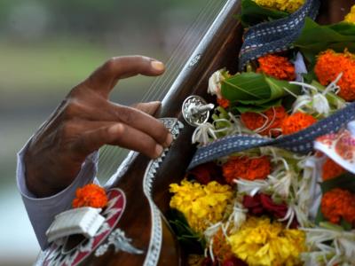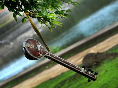 विश्रांतीच्या वेळी नदीकिनारी विसावलेली विणा