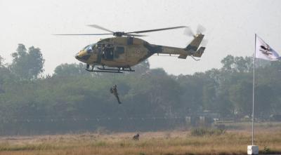 चित्तथरारक हवाई कसरती; लढाऊ हेलिकॉप्टरचा थरार - चित्त थरारक हवाई कसरतींमध्ये 'रुद्र' ने लक्ष वेधले. पदवी प्रदान सोहळ्यात प्रशिक्षणार्थी जवानांना विंग्स प्रदान केल्यानंतर येथील लष्करी तळावर सादर करण्यात आलेल्या चित्तथरारक हवाई कसरतीमध्ये चित्ता, चेतक, ध्रुव या हेलिकॉप्टर सोबतच रुद्र या अत्याधुनिक लढाऊ हेलिकॉप्टरनेही सहभाग घेतला.