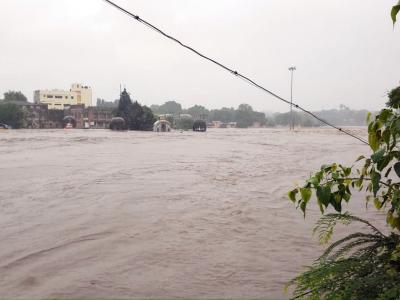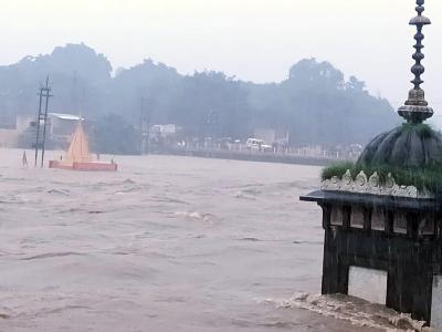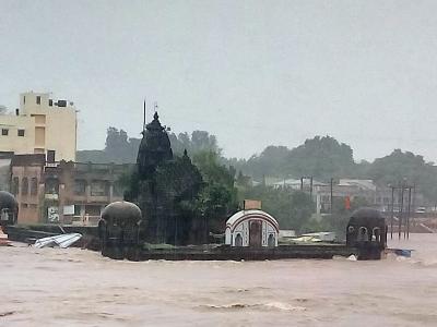 नारोशंकर मंदिरावरील घंटेपर्यंत पाणी पोहचले आहे. मंदिरचे संपूर्ण छत पुराच्या पाण्यात बुडाले आहे. नदीच्या पुराचे मापक असलेला दुतोंडया मारुती शुक्रवारी रात्रीच पाण्याखाली बुडाला.