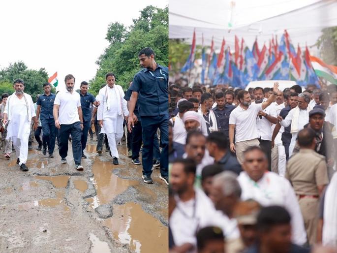 1 / 11काँग्रेस नेते राहुल गांधी यांच्या भारत जोडो यात्रेनं काँग्रेस कार्यकर्त्यांमध्ये चैतन्याचं वातावरण निर्माण झालं आहे. तर, सोशल मीडियावरही काँग्रेस समर्थक भक्कमपणे लढताना दिसत आहे. 2 / 11काश्मीर ते कन्याकुमार या प्रवासात पायी निघालेल्या राहुल गांधींच्या भारत जोडो यात्रेचा आज ३८ वा दिवस आहे. सध्या ही यात्रा सध्या कर्नाटकात सुरू आहे. या यात्रेला तरुणांपासून ते वयस्कर लोकांपर्यंत चांगला प्रतिसाद मिळत आहे. 3 / 11यात्रेतील राहुल गांधी यांचे फोटोसह व्हिडिओ सोशल मीडियावर व्हायरल होत आहेत. याअगोदर त्यांचे पावसातील भाषण व्हायरल झाले होते, आता पाण्याच्या टाकीवर भारताचा झेंडा घेतलेला एक व्हिडिओ तुफान व्हायरल झाला आहे. राहुल गांधींना तरुण वर्गाचं प्रेम मिळत असल्याचं व्हायरल फोटोंवरुन दिसून येतं. 4 / 11कधी पावसात भाषण, कधी टाकीवर चढून तिरंगा हाती घेतल्याचे फोटो तर कधी खड्या-खड्यांमधून मार्ग काढताना राहुल गांधी दिसत आहे. त्यांच्या या वारीत अनेक तरुण-तरुणी त्यांना भेटण्यासाठी पुढे येत आहेत. 5 / 11आपल्या भेटीसाठी आलेल्या सर्वांना ते भेटण्याचा प्रयत्न करतात, त्यांच्यासोबत सेल्फी घेतात, फोटोशूटही करताना दिसून येतात. काही अपंग बांधवही त्यांच्या भेटीला आल्याचे पाहायला मिळाले. 6 / 11राहुल गांधी यांच्या ‘भारत जोडो’ यात्रेचे महाराष्ट्रात साधारणतः सहा नोव्हेंबर पासून सुरुवात होणार आहे. या यात्रेचा राज्यातील प्रवास नांदेड जिल्ह्यातील देलगूर तालुक्यातून होणार असल्याचे माजी मंत्री तथा कॉंग्रेसचे विधिमंडळ नेते बाळासाहेब थोरात यांनी पत्रकारांशी संवाद साधताना सांगितले.7 / 11सात सप्टेंबर रोजी सुरु झालेली ‘भारत जोडो’ पदयात्रा केरळ, तामिळनाडू असा प्रवास करत आता कर्नाटक मध्ये आहे. या यात्रेला प्रचंड प्रतिसाद मिळतो आहे. यात्रेत सहभागी होणाऱ्या नागरिकांची संख्या पन्नास हजारांपासून दीड ते दोन लाखांपर्यंत आहे. 8 / 11देशात चैतण्यमय वातावरण आहे. आजपर्यंत ३५६० किलोमीटरची पदयात्रा जगाच्या पाठीवर कोणीही काढलेली नाही. महाराष्ट्रात साधारणतः सहा नोव्हेंबर पासून यात्रा सुरु होणार असून नांदेड ,हिंगोली,वाशीम,अकोला,बुलढाणा असा ३८१ किलोमीटरचा प्रवास आहे. 9 / 11२०१४ पासून देशात ज्या पद्धतीची राजवट सुरु आहे, त्यामुळे लोकशाही, स्वायत्त संस्था धोक्यात आलेल्या आहेत. याशिवाय राज्यघटना,मुलभूत तत्व,आपल्या मतांचा अधिकार हे पुढच्या काळात राहील ना राहील अशी परिस्थिती निर्माण झालेली आहे. 10 / 11विकासाची कामे ठप्प झालेली आहेत. बिघडलेली अर्थव्यवस्था,महागाई,प्रचंड बेरोजगारी या महत्वाच्या गोष्टींकडे लक्ष देण्याचे सोडून अन्य गोष्टींकडे जास्त लक्ष दिले जात आहे. त्यामुळेच, या सर्व गोष्टींच्या विरुद्
