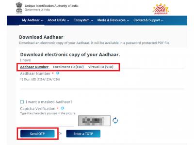 तुमच्याकडे आधार कार्ड नंबर, एनरोलमेंट नंबर (नोंदणी क्रमांक), व्हर्च्युअल आयडी यापैकी जे असेल तो पर्याय निवडा. यात आवश्यक असणारी माहिती भरा.