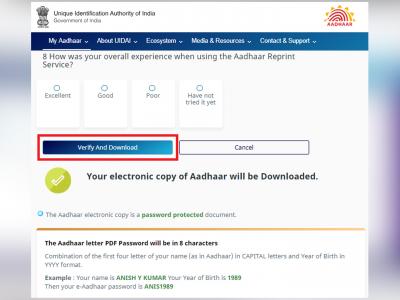 मोबाईलवर आलेला ओटीपी नंबर टाका. त्यानंतर Download Aadhaar या पर्यायावर क्लिक करून आधार कार्ड डाउनलोड करा. हे पीडीएफ फॉर्मेटमध्ये डाऊनलोड होईल.