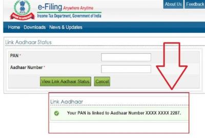 यानंतर जर तुमचे आधार-पॅन लिंक झाले असेल तर तुम्हाला Your pan is linked to aadhar number XXXXXXXX134” असा हिरव्या रंगातील टिकसोबत मेसेज दिसेल. अशाप्रकारे तुम्ही आरामात तुमचे आधार-पॅनला लिंक झालेय की नाही हे तपासू शकणार आहात.