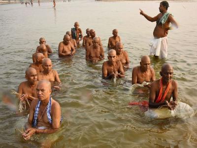 गया येथे पितरांच्या मोक्ष प्राप्तीसाठी पिंड दान करताना भाविक