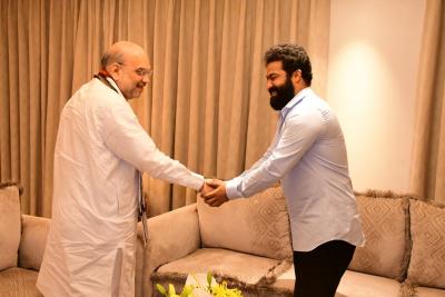 अमित शहांनी स्वत: अभिनेत्यासोबतचे फोटो शेअर केले असून दोघेही एकमेकांच्या हातात हात देत असल्याचं या फोटोत दिसून येत आहे. तेलुगू सिनेमाचा रत्न आणि प्रतिभाशाली अभिनेता ज्युनियर एनटीआरची हैदराबादेत भेट झाली, असे ट्विट अमित शहा यांनी केले आहे.