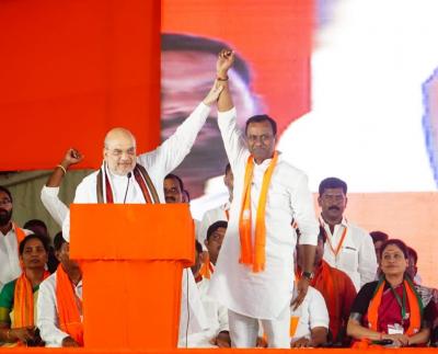 हैदराबाद येथे अमित शहांनी भाजप पदाधिकाऱ्यांच्या उपस्थितीत तेथील जनतेलाही संबोधित केले. या दौऱ्यात आगामी काळात दक्षिण भारतात भाजपचा विस्तार वाढविण्यासंदर्भात मार्गदर्शन केलं.