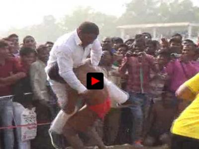 कुस्तीच्या आखाड्यात दोन पहिलवानाची लढाई तुम्ही पाहिली असेल, पण बिहारमध्ये एका खासदाराने कुस्तीच्या आखाड्यात एका पहिलवानाविरोधात शड्डू ठोकले आणि दोघामध्ये दंगल झाली.