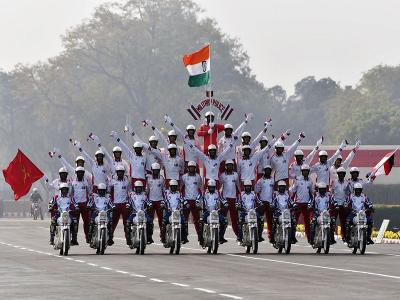 देशाच्या तिन्ही सैन्य दलांनी चित्तथरारक कसरती दाखवून देशाच्य सैन्यदलाचं सामर्थ जगासमोर मांडलं. यावेळी वायूदलाच्या हेलिकॉप्टरने अवकाशात तिरंगा फडकवला.