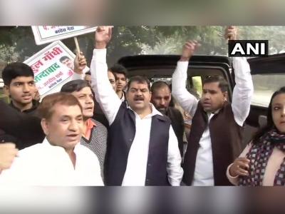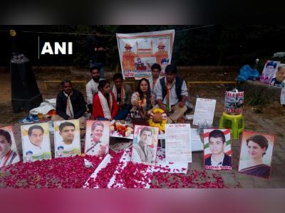 राहुल गांधी यांच्या दिल्लीतील निवासस्थानाबाहेर काँग्रेस कार्यकर्त्यांनी हवन केले.
