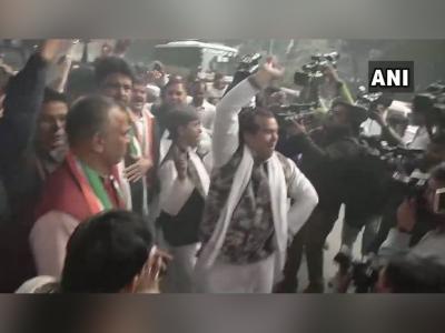 मतमोजणी सुरू झाल्यानंतर सुरुवातीचे कल काँग्रेसच्या बाजूनं येऊ लागले. हे कल पाहता काँग्रेस नेते जगदीश शर्मा आनंद साजरा करण्यासाठी फटाके घेऊन नवी दिल्लीतील काँग्रेस कार्यालयात दाखल झाले.