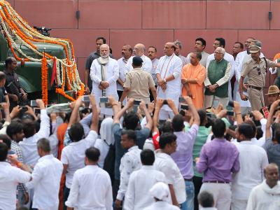 अटलबिहारी वाजपेयीचं पार्थिव शरीर अंत्यसंस्कारासाठी राजघाटाजवळील राष्ट्रीय स्मृतिस्थळाजवळ नेण्यात आलं.