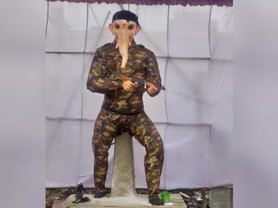 चेन्नई येथील एग्मोर येथे भारतीय लष्करातील गणवेशातील गणपती बाप्पा
