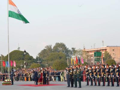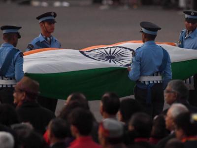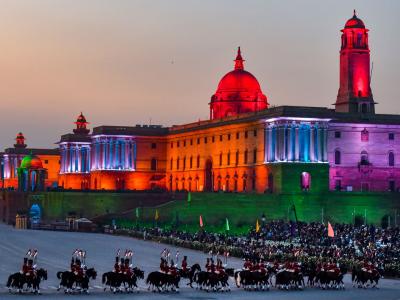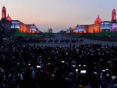 बीटिंग रिट्रीटदरम्यान रायसीना हिलला तिरंग्यांच्या रोषणाईनं झगमगून टाकलं होतं. बीटिंग रिट्रीट सोहळ्यासाठी विजय चौकमध्ये सामान्य नागरिकांना प्रवेश निषिद्ध करण्यात आला होता.