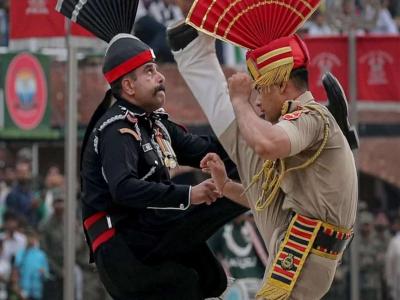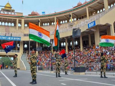 अटारी-वाघा सीमेवर बीटिंग द रिट्रीटचा सोहळा उत्साहात संपन्न