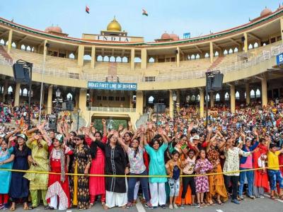 अटारी-वाघा सीमेवर आज बीटिंग द रिट्रीटचा सोहळा उत्साहात पार पडला. बीटिंग द रिट्रीट पाहण्यासाठी मोठ्या संख्येने नागरिक इथे उपस्थित होते.