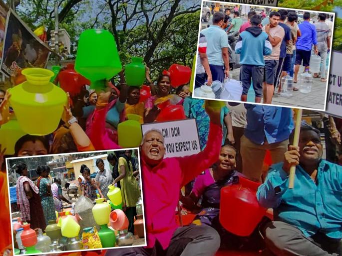 1 / 9बंगळुरूतील जलसंकटामुळे लोकांचं जगणं कठीण झालं आहे. पाणीटंचाईचा सामना करण्यासाठी तिथले लोक घरून काम करणं, एक दिवसाआड आंघोळ करणं, आठवड्यातून दोनदा बाहेरून जेवण मागवणं, डिस्पोजेबल भांडी वापरणं असे विविध प्रयोग करत आहेत.2 / 9बंगळुरूच्या लोकांसाठी, विशेषत: व्हाईटफिल्ड, केआर पुरम, इलेक्ट्रॉनिक सिटी, आरआर नगर, केंगेरी आणि सीव्ही रमण नगर येथे राहणाऱ्या लोकांसाठी पाणीटंचाई ही एक गंभीर बाब बनली आहे.3 / 9पाणी साठवण सुविधांनी सुसज्ज असलेल्या मोठ्या अपार्टमेंटमध्ये राहणारे लोकही आता पिण्याच्या पाण्यासाठी टँकरवर अवलंबून आहेत. अशा परिस्थितीत अनेक प्रकारचे निर्बंध लादण्यात आले आहेत. बंगळुरूमधील रेस्टॉरंट्स पाण्याचा जास्त वापर टाळण्यासाठी डिस्पोजेबल कप, ग्लास आणि प्लेट्स वापरण्याचा विचार करत आहेत.4 / 9पाण्याची टंचाई लक्षात घेता अनेक शाळा आणि इमारत संघटनांनी 'पाऊस नाही, पाणी नाही', 'सर्वत्र पाणी आहे पण प्यायला एक थेंबही नाही', 'पाणी वाचवा' इत्यादी पोस्टर लावून आपली मतं मांडली आहेत. पाणीटंचाईमुळे शहरातील एका कोचिंग सेंटरने नुकतेच आपल्या विद्यार्थ्यांना आठवडाभर ऑनलाइन क्लासेसद्वारे अभ्यास करण्यास सांगितले आहे.5 / 9बन्नेरघट्टा रोडवरील शाळाही बंद ठेवण्यात आली होती. विद्यार्थ्यांना ऑनलाइन अभ्यास करण्यास सांगितलं आहे. केआर पुरममध्ये राहणारे काही लोक एक दिवसाआड आंघोळ करत आहेत. घरी स्वयंपाक करण्याऐवजी ते आठवड्यातून दोनदा जेवणाची ऑर्डर देत असून भाडेकरूंच्या पाणी वापरावर विविध निर्बंध लादण्यात आले आहेत.6 / 9शासनाने दर निश्चित करूनही टँकरच्या पाण्यासाठी जास्त पैसे मोजावे लागत असल्याचं नागरिकांचं म्हणणं आहे. केआर पुरम येथील रहिवासी असलेल्या सुजाता म्हणाल्या की, तापमान वाढत असल्याने रोज आंघोळ केल्याशिवाय राहू शकत नाही, पण एक दिवसाआड आंघोळ करण्याशिवाय त्यांच्याकडे पर्याय उरला नाही.7 / 9आम्ही काय करू? माझी दोन शाळेत जाणारी मुलं आहेत आणि आम्हाला घरची कामंही करावी लागतात. भांडी स्वच्छ करा, अन्न शिजवा, कपडे धुवा…म्हणून, आम्ही कागदी प्लेट वापरण्यास सुरुवात केली आहे, अशा प्रकारे आम्ही आमचा पाण्याचा वापर कमी केला आहे आणि आम्ही आठवड्यातून दोनदा अन्न ऑर्डर करतो असं सांगितलं आहे.8 / 9शहरातील सुमारे 50 टक्के बोअरवेल कोरड्या पडलेल्या भूजल स्रोतांची पूर्तता करण्यासाठी महापालिका अधिकाऱ्यांनी कोरड्या जलाशयांमध्ये दररोज 1,30 कोटी लिटर प्रक्रिया केलेल्या पाण्याने भरण्याचा निर्णय घेतला आहे.9 / 9बंगळुरूमधील या भीषण जलसंकटाचे कारण गेल्या वर्षी कमी पाऊस असल्याचं सांगितलं जात आहे. केंगेरी येथील एका अपार्टमेंटमध्ये राहणाऱ्या शोभा म्हणाल्या, आमच्या अपार्टमेंटमध्ये पावसाचे पाणी साठव