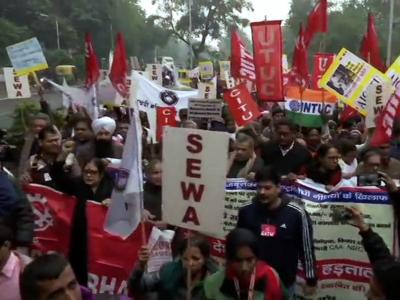 केंद्र सरकारच्या कामगारविरोधी धोरणांच्या निषेधार्थ विविध कामगार संघटनांनी बुधवारी भारत बंदची हाक दिली आहे. या बंदमध्ये देशभरातील 25 कोटी कामगार सहभागी होत असल्याचा दावा केंद्रीय कामगार संघटनांनी केला आहे. मात्र बंदमधून रेल्वे व अत्यावश्यक सेवांना वगळण्यात आले आहे. आजच्या या भारत बंददरम्यान देशातील काही कामगार संघटनांनी आंदोलन केले. यावेळी आंदोलकांनी पश्चिम बंगालमधील कंचरापारा येथे ट्रेन अडवल्या. तसेच, या बंदध्ये केंद्र व राज्य सरकार, सार्वजनिक बँका, विमा, पोर्ट ट्रस्ट, संरक्षण, बीपीसीएल, एचपीसीएल, बीएसएनएल, एमटीएनएल, पालिका, महापालिका कर्मचारी तसेच टॅक्सी, रिक्षा, मालवाहतूकदार, अंगणवाडी, आशा वर्कर्स, घरकामगार, माथाडी, बांधकाम कामगार सहभागी झाल्याचे सांगण्यात येत आहे.