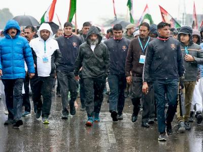 मात्र, शुक्रवारी यात्रा कठुआला पोहोचली तेव्हा राहुल गांधी जॅकेट घातलेले दिसले. आता राहुल गांधींच्या नव्या लूकबाबत सोशल मीडियावर वेगवेगळ्या प्रकारच्या चर्चा सुरू आहेत.