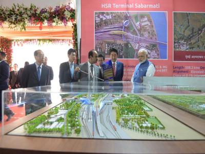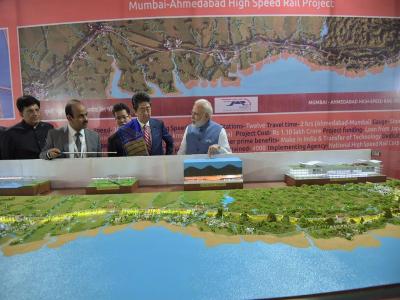 पंतप्रधान नरेंद्र मोदी आणि जपानचे पंतप्रधान शिंजा आबे यांच्या हस्ते 'मुंबई-अहमदाबाद बुलेट ट्रेन' प्रकल्पाचे भूमिपूजन करण्यात आले