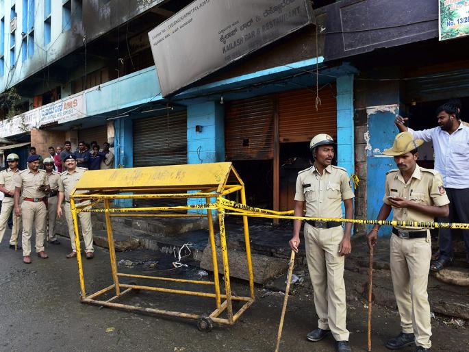 1 / 6बंगळुरुमध्ये बारला लागलेल्या आगीत पाच कर्मचाऱ्यांचा मृत्यू झाला. रविवारी रात्री अकराच्या सुमारास लागलेली आग आटोक्यात आली आहे2 / 6आत झोपलेल्या पाच कर्मचाऱ्यांचा मृत्यू झाला. बंगळुरुतील भाजी मंडतील कुंभारा सांघा बिल्डिंगमधील तळघरामध्ये असेलेल्या कैलास बार आणि रेस्टॉरन्टला आग लागली होती3 / 6पहाटे 2: 30 वाजता ही दुर्देवी ही घटना घडली. होरपळून मृत्यू झालेले हे सर्व कर्मचारी हॉटेल बंद झाल्यानंतर तिथेच झोपले होते.4 / 6अचानक आग लागल्याने त्यांना बचावाची कुठलीच संधी मिळाली नाही. यात या पाच जणांचा जागीच मृत्यू झाला. आग कशामुळे लागली याची माहिती अद्याप समजू शकलेली नाही5 / 6रात्री अडीचच्या सुमारास अचानक आग लागली. या घटनेबद्दल माहिती मिळाल्यानंतर तातकाळ घटनास्थळावर अग्निशामक दलाच्या गाड्या आणि बंब दाखल झाले. पहाटे पाच वाजता आगीवर नियंत्रण मिळवण्यात आले. तोपर्यंत आत झोपलेल्या पाच जणांचा या अग्नितांडवामध्ये मृत्यू झाला6 / 6ही आग नेमकी कशामुळं लागली हे अद्याप समजू शकले नाही. ज्यावेळी रेस्टॉरन्टला आग लागली त्यावेळी काही कर्मचारी आतमध्ये झोपले होते. आग लागल्यानंतर ते रेस्टॉरन्टमध्ये अडकले गेले. आगीच्या धुरामध्ये घुसमटून त्यांचा जागीच मृत्यू झाला