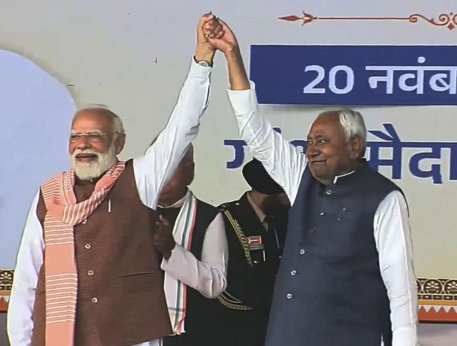 बिहार निवडणुकीच्या निकालानंतर भाजपा जेडीयू यांच्या एनडीएला प्रचंड बहुमत मिळाले. आता नितीश कुमार यांच्या नेतृत्वात नवीन सरकारची स्थापना झाली आहे. पटना येथील गांधी मैदानात नितीश कुमार यांनी दहाव्यांदा मुख्यमंत्रिपदाची शपथ घेतली आहे.
