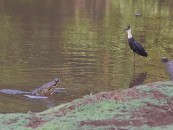 1 / 5गोवा राज्यात जैवविविधता मोठया प्रमाणात आढळते.राज्यातील एकमेव प्राणी संग्रहालय असलेले बोंडला हे त्याला अपवाद नाही. बोंडला अभयारण्य विविध प्रकारच्या ‘फ्लोरा आणि फाउना‘ने संपन्न आहे. या प्राणी संग्रहालयात बिबटे, अस्वल, गवा रेडा, पाणघोडा, चितळ असे वन्य प्राणी पहावयास मिळतातच परंतु प्राणी संग्रहालयाच्या बाहेरही अनेक प्रकारचे पशू पक्षी दृष्टीस पडतात. बोंडला अभयारण्य परिसरात दिसणाऱ्या विविध प्रकारच्या पशू पक्ष्यांचा छायाचित्रातून घेतलेला आढावा. प्राणी संग्रहालयाबाहेर असलेल्या तळयात असणारया मगरींना दिलेल्या अन्नावर डल्ला मारण्याच्या प्रयत्नात असलेला वुली नेक्ड स्टॉर्क पक्षी. (सर्व छायाचित्रे : पिनाक कल्लोळी)2 / 5अभयारण्यात आढळणारा शेकरु अर्थात मलबार जायंट स्क्वीरल.3 / 5अभयारण्यात आढळणारा गार्डन लिझर्ड.4 / 5केवळ प्राणी संग्रहालयातच नाही तर बाहेरील परिसरातही चितळ दृष्टीस पडते.5 / 5अभयारण्यात आढळणारा रॉक आगामा लिझर्ड.