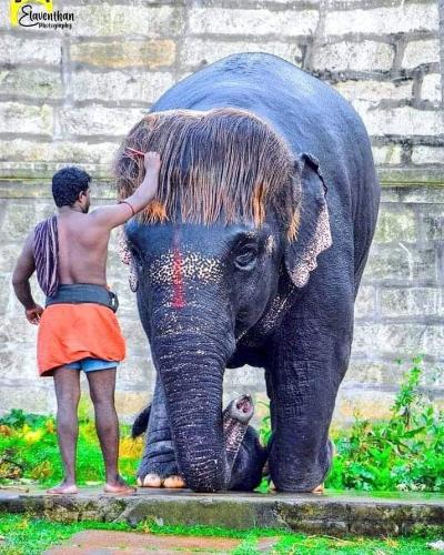 या फोटोला जास्त लाईक्स आणि कमेंट्स येत आहेत. महावत राजगोपाल हे या हत्तीची देखभाल स्वतःच्या मुलाप्रमाणे करतो.