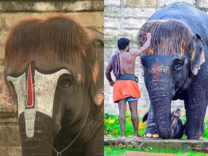 'बॉब कट' हेअरस्टाईलने फेमस झाला हत्ती, दर्शनासाठी भाविकांची गर्दी