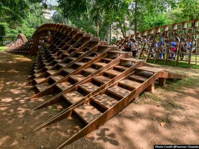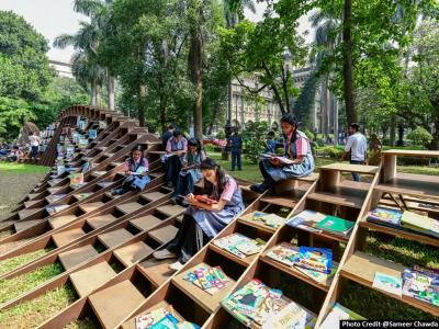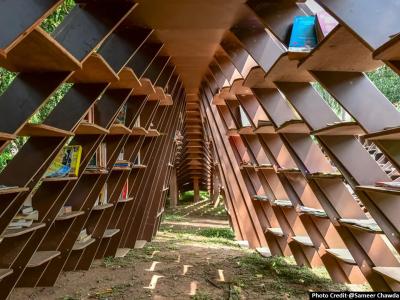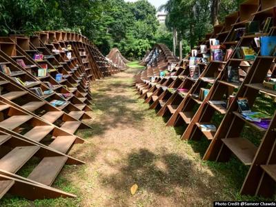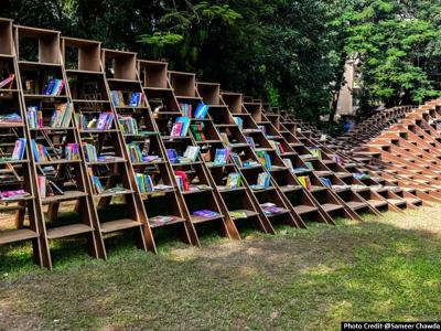 प्लायवूडपासून साकारण्यात आलेली ही कलाकृती सध्या सर्वांचेच लक्ष वेधून घेत आहे. ही कलाकृती म्हणजे खुले वाचनालय असून, यात जवळपास हजारोंनी पुस्तकांचा खजिना आहे.