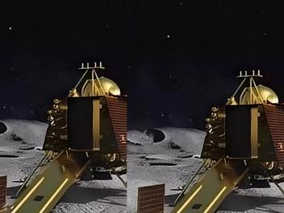 या फोटोत विक्रम लँडर आणि प्रज्ञान रोव्हर दाखवले आहेत पण तेही खरे नाहीत. असे फोटो प्रतिकात्मक बनवली जातात.