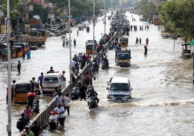 चेन्नईमध्ये मोठ्या प्रमाणावर आलेल्या पुराच्या दरम्यान लोकांना त्यांच्या घरातून बाहेर काढण्यासाठी बचाव कर्मचार्यांनी फुगवलेले तराफा आणि दोरीचा वापर केला. पाण्याने वेढलेल्या भागातील लोकांनी मदतीसाठी आवाहन केले, लोकांना उंच जमिनीवर नेण्यासाठी आणखी बोटी तैनात केल्या आहेत.