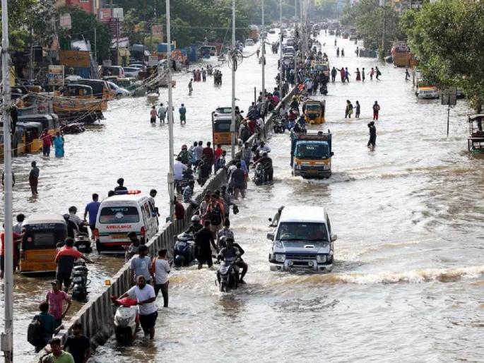 1 / 7नवी दिल्ली : चक्रीवादळ मिचाँगमुळे तामिळनाडूची राजधानी चेन्नई तसेच इतर जिल्ह्यांमध्ये मुसळधार पाऊस झाला, त्यामुळे रस्ते आणि घरे पाण्याखाली गेली. त्यातही वीज संकटाचा प्रश्न निर्माण झाला. मिचाँग आता कमकुवत झाले असले तरी मिचाँगचा प्रभाव अजूनही अनेक जिल्ह्यांमध्ये आणि भागात दिसून येत आहे. 2 / 7चेन्नई आणि उपनगरातील काही भागातील लोकांना अजूनही अस्वच्छ पाणी आणि विजेच्या समस्येचा सामना करावा लागत आहे. दरम्यान, मदत आणि बचावकार्य तीव्र करण्यात आले आहे. पुरामुळे झालेल्या नुकसानीचा आढावा घेण्यासाठी आज संरक्षण मंत्री राजनाथ सिंह गुरुवारी तामिळनाडूच्या दौऱ्यावर जाणार आहेत.3 / 7मुख्यमंत्री एमके स्टॅलिन यांच्या नेतृत्वाखालील तामिळनाडू सरकारने भीषण पुरामुळे चेन्नई, तिरुवल्लूर, कांचीपुरम आणि चेंगलपट्टू येथील सर्व शाळा आणि महाविद्यालयांच्या सुट्ट्या गुरुवारपर्यंत वाढवल्या आहेत. पल्लवरम, तांबरम, वंडलूर, थिरुपुरूर, चेंगलपट्टू आणि थिरुकाझुकुंद्रम येथील शैक्षणिक संस्था आज बंद राहतील.4 / 7भीषण पुरामुळे चेन्नईतील रहिवाशांना दूध, पिण्याचे पाणी आणि इतर जीवनावश्यक वस्तूंचा तुटवडा जाणवत आहे. प्रत्यक्षात पुरामुळे या सर्व गोष्टींचा पुरवठा पूर्णपणे ठप्प झाला आहे. त्याचबरोबर लोकांच्या अनावश्यक खरेदीमुळे दैनंदिन जीवनावश्यक वस्तूंचा तुटवडा निर्माण झाला आहे.5 / 7चक्रीवादळापूर्वी झालेल्या मुसळधार पावसामुळे आलेल्या पुरात 17 लोकांचा मृत्यू झाल्याचा अंदाज आहे, त्यापैकी बहुतांश मृत्यू चेन्नईमध्ये झाले आहेत. तर कोट्यवधींच्या मालमत्तेचे नुकसान झाले आहे. 6 / 7चेन्नईमध्ये मोठ्या प्रमाणावर आलेल्या पुराच्या दरम्यान लोकांना त्यांच्या घरातून बाहेर काढण्यासाठी बचाव कर्मचार्यांनी फुगवलेले तराफा आणि दोरीचा वापर केला. पाण्याने वेढलेल्या भागातील लोकांनी मदतीसाठी आवाहन केले, लोकांना उंच जमिनीवर नेण्यासाठी आणखी बोटी तैनात केल्या आहेत.7 / 7चेन्नईमध्ये लोकांना दिलासा देण्यासाठी आणि पायाभूत सुविधांची पुनर्बांधणी करण्यासाठी द्रमुकने मंगळवारी 5,000 कोटी रुपयांची त्वरित केंद्रीय मदतीची मागणी केली. तसेच, तामिळनाडू सरकारने सांगितलं की त्यांचं मुख्य ध्येय हे 80% वीज पुरवठा पुनर्संचयित करणे आहे आणि 70% मोबाईल नेटवर्क आधीच पुनर्संचयित केले गेले आहेत.