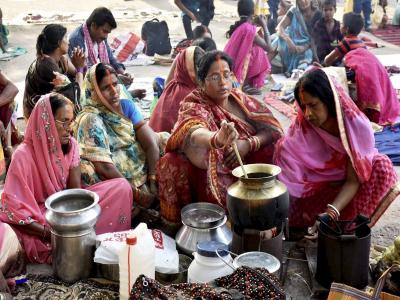 पाटणा : छठ पूजेसाठी बाहेरगावाहून घराकडे परतणारे भाविक. पर्सा बाजार रेल्वे स्टेशनवरील हे दृश्य आहे.
